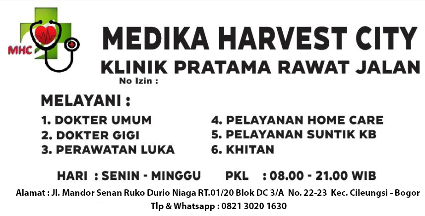 Bagi masyarakat cileungsi harvest city yang membutuhkan pelayanan kesehatan bisa datang ke klinik kami, kami juga melayanani pelayanan kesehatan Home Care / Home Visit ke lokasi anda.